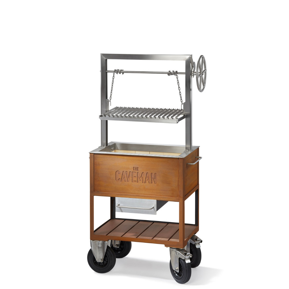 The Caveman Grill bestaat voor een groot deel uit 3 mm dik cortenstaal, perfect voor buiten en minstens zo sterk als rvs. De roestkleurige bovenlaag beschermt tegen verder roesten en geeft een zeer natuurlijke uitstraling. Het rooster, de aslade en de opbouw zijn gemaakt van hoogwaardig roestvast staal.